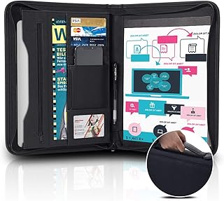 Tyson Portfolio étui organiseur personnel Padfolio de voyage fermeture à glissière avec bloc-notes, pochettes et cartes pour curriculum vita document et bloc-notes (a5 taille)