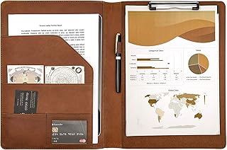 Porte-documents de Conferencier Bloc-notes Pad A4 Portfolio Homme Femme d'Affaires Organiseur Trieur Personnel Padfolio Portefeuilles, Marron