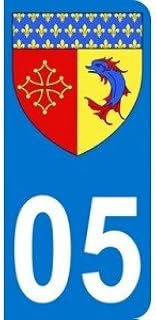 Autocollant 05 avec blason des Hautes-Alpes plaque immatriculation Auto (9,8 x 4,5 cm)