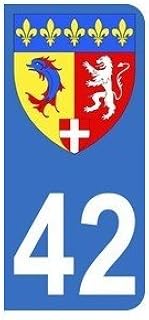 Autocollant 42 avec blason Rhône-Alpes plaque immatriculation Moto (6,3 x 2,9 cm)