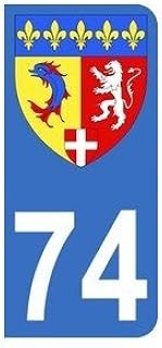 Autocollant 74 avec blason Rhône-Alpes plaque immatriculation Auto (9,8 x 4,5 cm)