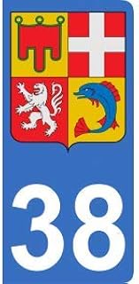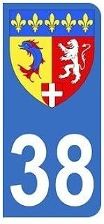 Autocollant 38 avec Le Blason de la Nouvelle région Auvergne-Rhône-Alpes pour Plaque immatriculation Auto (9,8 x 4,5 cm)