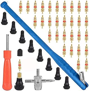 Queta 43pcs Ensemble d'Outils de Valve Pneu Outil Réparation de Pneu Outil d'Installation de Valve Extracteur de Valve à Tête Unique Outil de Valve Multifonction 30 × Noyau de Valve 10 × Valves TR412