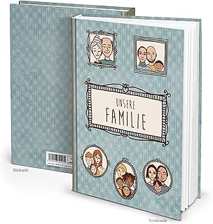 Carnet de famille XXL bleu & marron Pour les histoires familiales – Carnet à pages blanches et vierges – Cadeau rétro pour maman, papa, parents, grands-parents, enfants