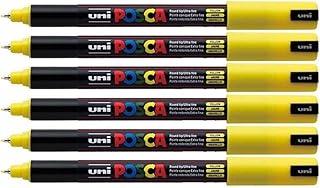 - Uni Posca PC - 1MR jaune marqueurs peinture à pointe Ultra-Fine 0,7 mm Calibre plume Pointe écrit sur toutes les surfaces en plastique, en verre en métal et tissu en bois (lot de 6)