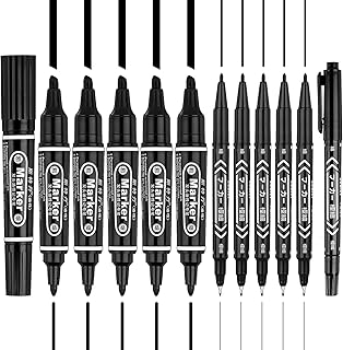 Whaline Lot de 12 marqueurs permanents 4 tailles Pointe ultra fine et pointe biseautée Noir Pour carte, bois, verre, métal, céramique, peinture sur roche