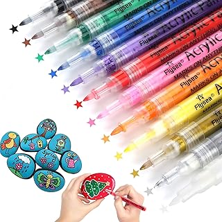 Guiffly Stylos De Peinture Acrylique, Marqueurs De Peinture pour Plastique, Pierre, Céramique, Verre, Bois, Tissu - Marqueurs à Base d'eau à Pointe Fine, 12 Couleurs Incluses