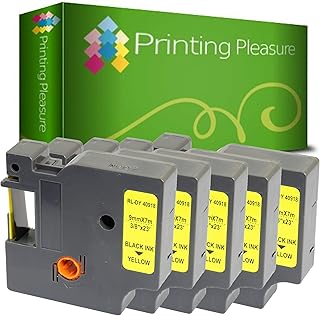 Printing Pleasure 5 x D1 40918 S0720730 Noir sur Jaune Ruban Cassette Compatible pour Dymo LabelManager 160 210D 220P 260P 280 360D 420P 450D 500TS PnP & LabelPoint & LabelWriter 450 Duo | 9mm x 7m