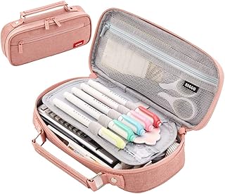 Oyachic Trousse à Crayons Grande Capacité Sac de Papeterie Porte-crayons à Stylos Plumier Trousses Scolaire Trousse à Maquillage Organisateur Poche (Rose)