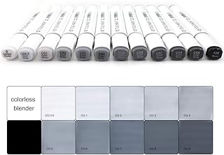 Touchnew Artiste graphique marqueur 6/12/30 Couleurs Tons de gris, à double pointe Art marqueurs pour croquis, dessin 6 Blue Grey …