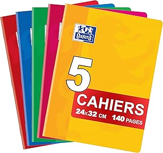 Oxford Office Classique 100100653 Lot de 5 Cahier reliure piqûre avec petits carreaux 24 x 32 cm 140 pages Assortis