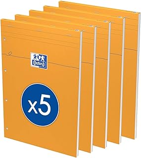 OXFORD Lot de 5 Bloc-Notes Perforé Orange A4+ Grands carreaux Seyès 80 Feuilles Agrafées Côté Couverture Carte Enduite Rouge