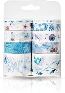 Keleily Ruban adhésif Washi, ruban adhésif de masquage Washi coloré, 10 rouleaux, ruban adhésif décoratif, Collection pour les amateurs, cartes, Scrapbooking, thème Arts-Ocean de bricolage